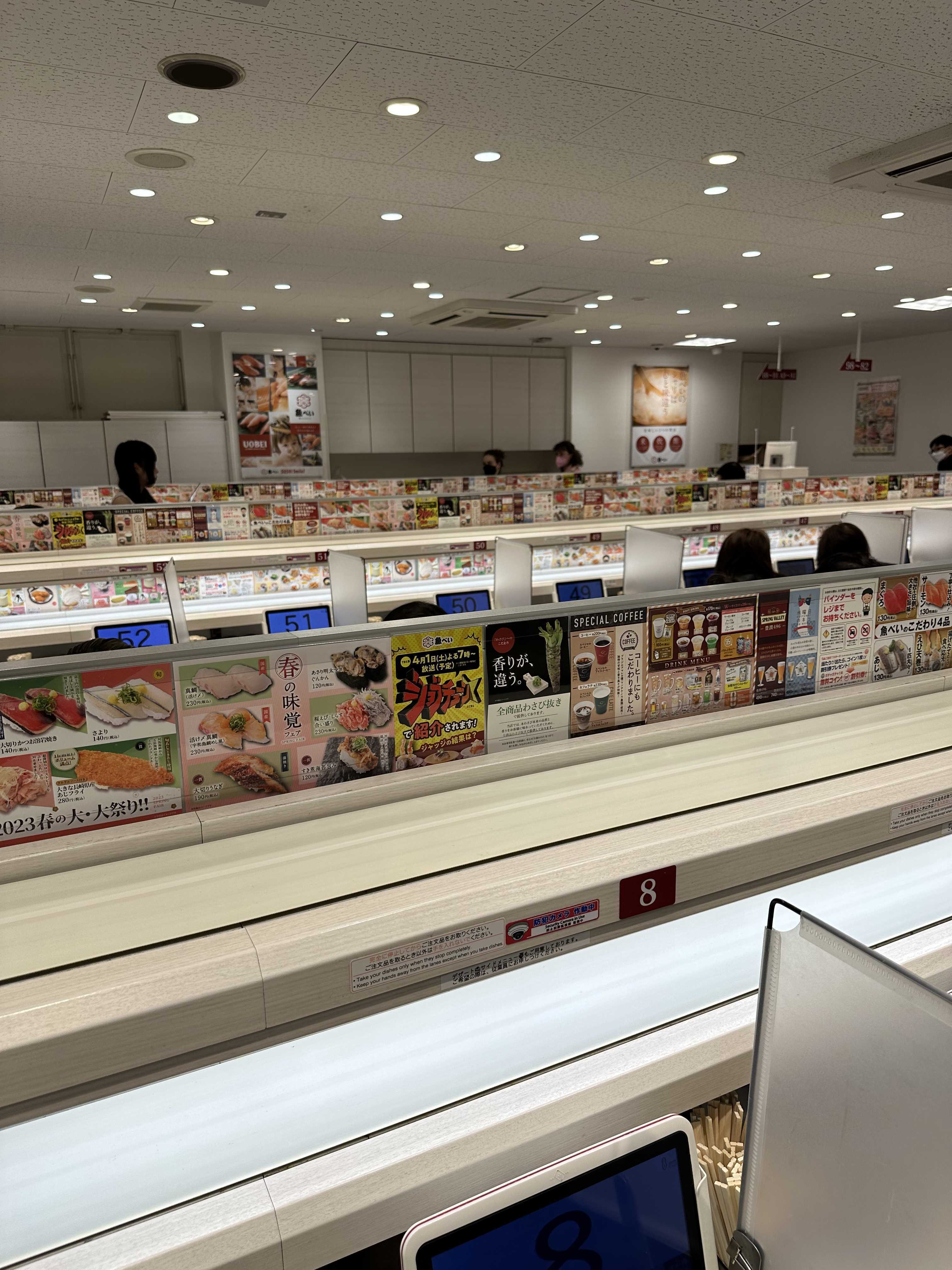 Uobei, sushi severler için Tokyo'da önerebileceğim yerlerden biri. Teknolojik olarak gelişmiş bir altyapıları bulunuyor. Tablet üzerinden verdiğiniz sipariş bir bant aracılığıyla el değmeden size ulaşıyor.